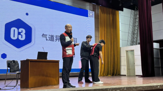 从判断意识、规范胸外按压、正确人工呼吸,到快速取放AED、准确贴敷电极片;从异物卡喉的腹部冲击手法,到不同部位创伤的包扎固定技巧,讲师逐一示范、手把手指导。参训师生踊跃上手实操,在模拟演练中熟练掌握急救流程,切实把理论知识转化为应急处置能力,进一步强化“人人学急救、急救为人人”的安全理念。
